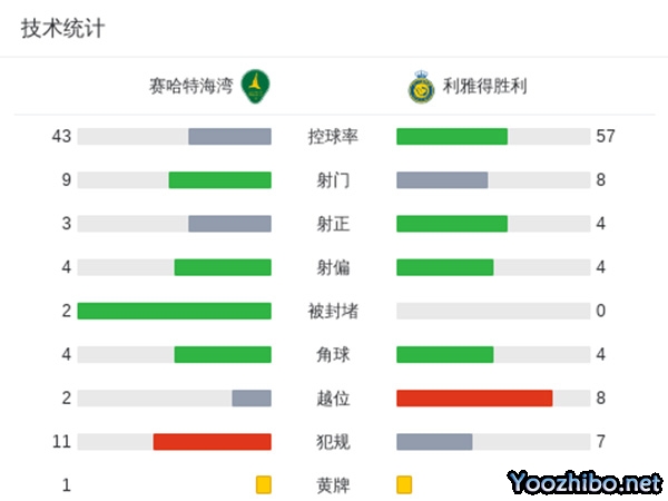 利雅得胜利1-0卡利杰 C罗中横梁+破门被吹越位