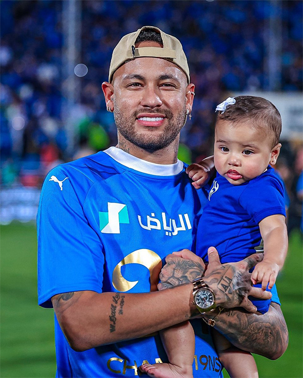 本场比赛因伤无法登场的巴西巨星内马尔,也来到现场观战,为新月队友们加油打气。内马尔戴着鸭舌帽,一身休闲装,与家人和孩子一起观战。