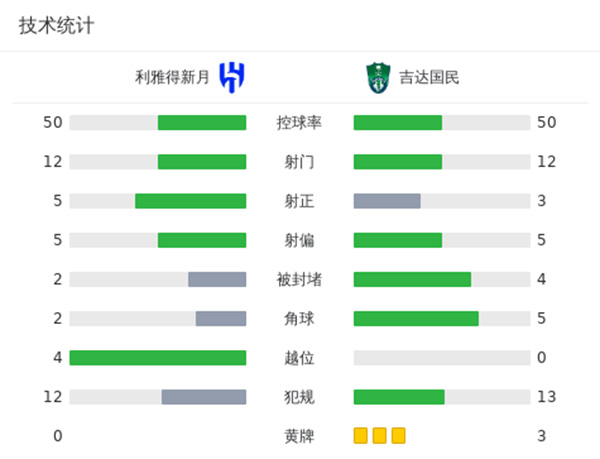 最终全场比赛结束,利雅得新月3-1吉达国民。