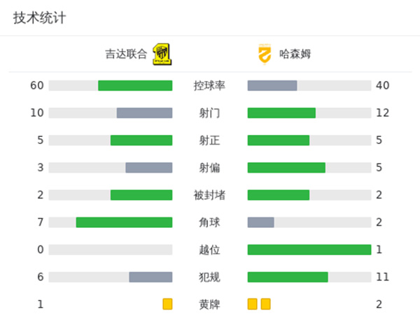 最终吉达联合2-2哈森姆连续四轮不胜。