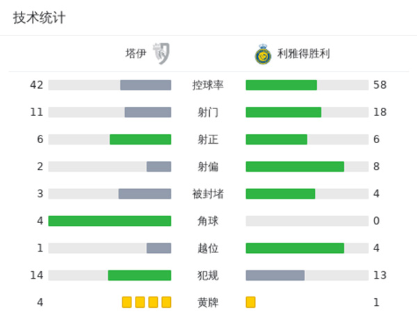 全场比赛结束,利雅得胜利2-1塔伊。