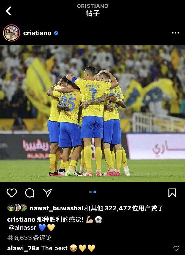 颇为讽刺的是,就在C罗率队取得一场3-1的胜利同时,老东家曼联却在本轮英超以同样的比分输给布莱顿,开局5轮已经遭遇了3场失利,创下了34年的耻辱。曾与C罗决裂的滕哈格,如今也因为带队战绩不佳,遭到了外界强烈的质疑声。C罗的这条动态,疑似有嘲讽滕哈格和曼联高层的意思。