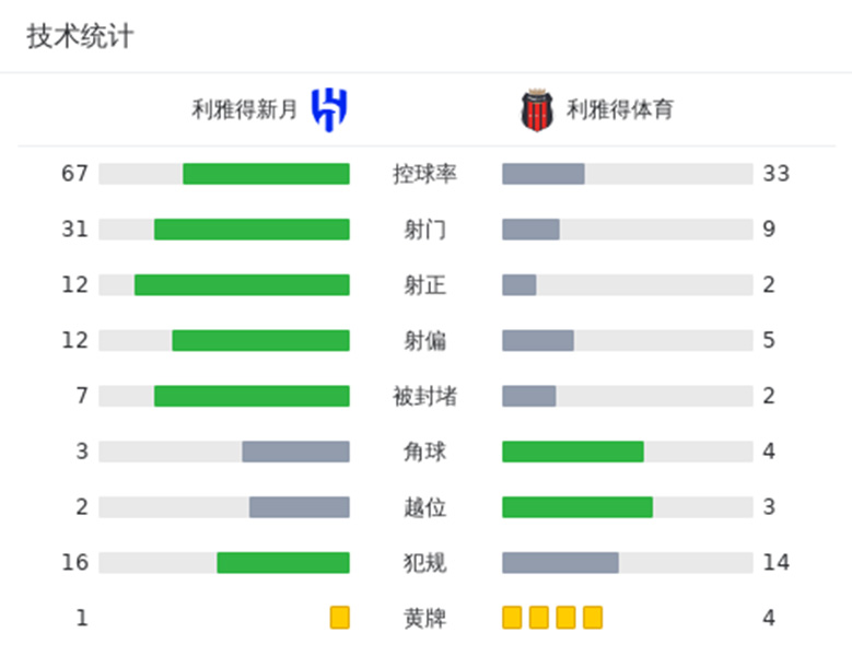 第96分钟,阿基尔左路传中,格雷门前推射被布努挡出,阿里再补射破门,利雅得新月6-1利雅得体育。