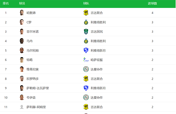 上演帽子戏法之后的C罗也实现了弯道超车,一场比赛打进3球,这也让C罗在射手榜的排名飙升,目前C罗来到射手榜第二名,仅次于打进4球的前中超外援哈默德。联想到此前C罗在阿拉冠拿到金靴奖,如果可以延续良好的状态,那么本赛季冲击联赛金靴,对于38岁的C罗来说是很有可能实现的。