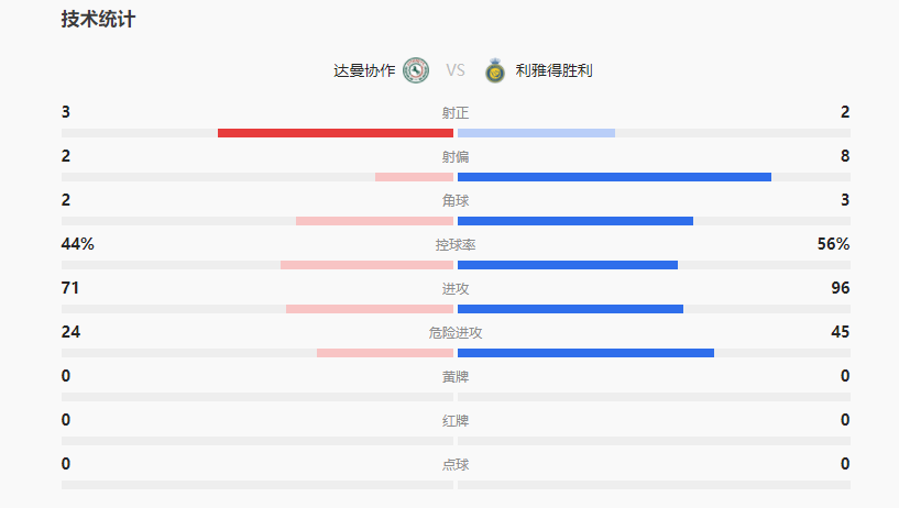 利雅得胜利1-2达曼协作 本泽马献助攻科罗纳多双响