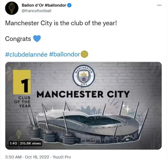 178直播10月18日凌晨,2022年金球奖颁奖典礼公布了年度最佳俱乐部。最终英超冠军曼城当选,利物浦排名第2,皇马则位列第3。