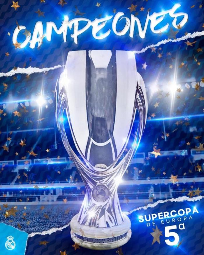 现在,皇马队史已经有5座欧超杯冠军,追平巴萨和米兰,并列历史第一。
