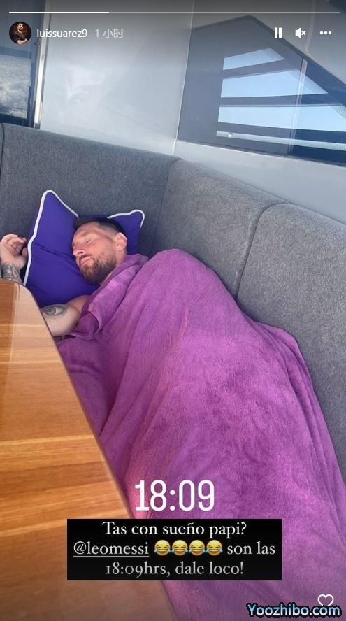 178直播06月27日讯 苏亚雷斯一家现在正在和梅西一家一起度假,苏亚雷斯今天在Instagram上晒出一张梅西熟睡的照片,并对他进行了调侃。