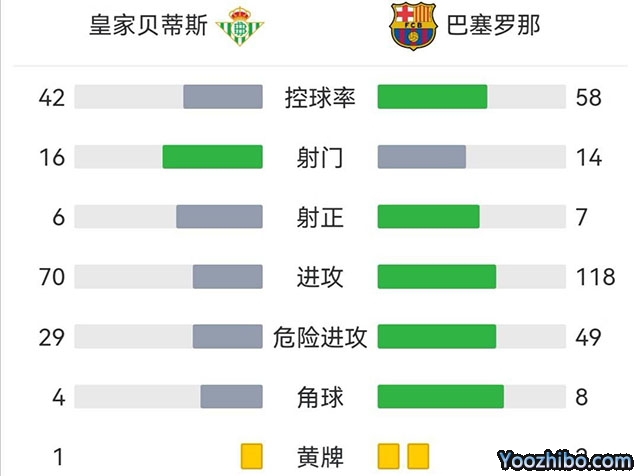全场比赛结束,巴塞罗那2-1皇家贝蒂斯。