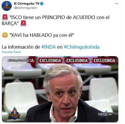 众所周知,29岁的伊斯科与皇马今夏合同就将到期,但皇马没有意愿再与他续约,伊斯科今夏自由身离队已经是板上钉钉的事情。此前,伊斯科与佛罗伦萨、国际米兰、热刺等队都有过联系,但因达却曝光了一条至今为止人们从未设想过的道路,那就是加盟皇马的死敌巴萨。