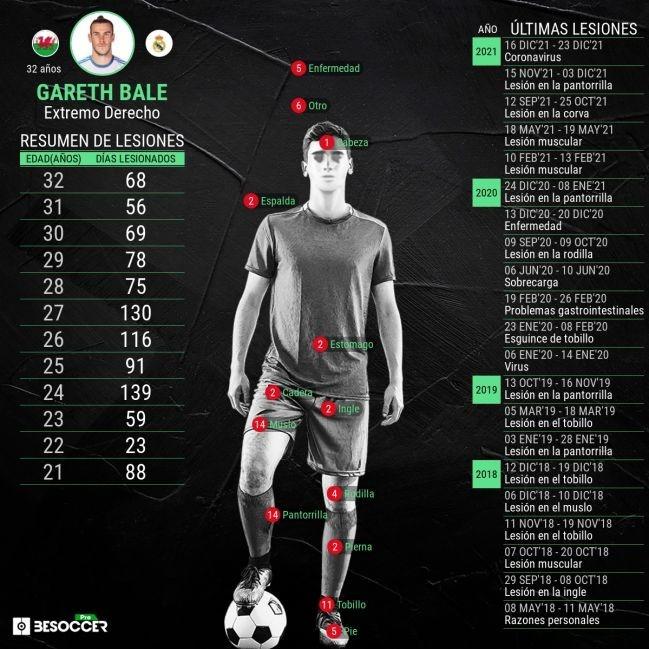 178直播01月02日讯 ,据阿斯报报道,贝尔由于肌肉不适将缺席和赫塔菲的比赛。外媒besoccer统计了贝尔21岁到32岁的缺席的天数,其中24岁和27岁,缺席的天数都超过了130天。