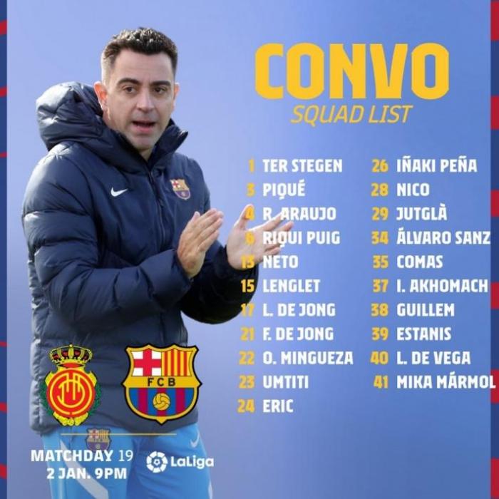 178直播01月02日讯,巴萨公布了客战马洛卡的大名单。由于疫情和伤病的原因,一线队只有11人入选。其中之前感染新冠病毒的乌姆蒂蒂和朗格莱进入名单。