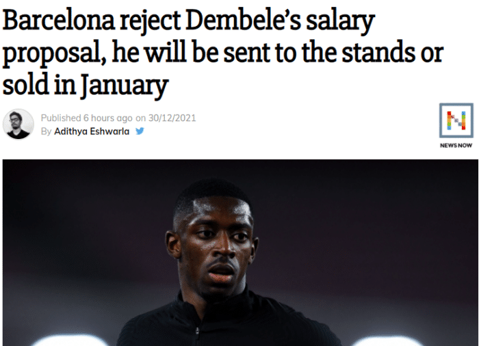 登贝莱与巴萨的合同将在明夏到期,虽然巴萨已开出多份续约合同,但都遭到登贝莱及其经纪人的“冷处理”。现在双方仍未续约,球员从1月1日起就可以与其他俱乐部自由接触和谈判。