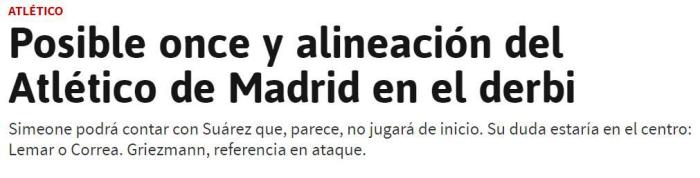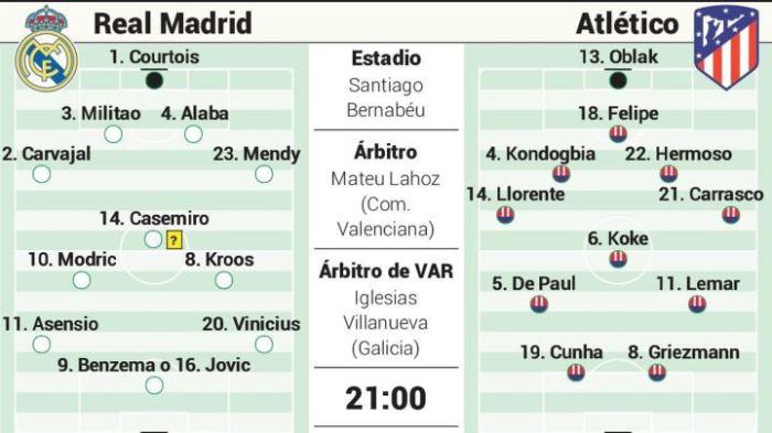 《阿斯报》预测马德里德比首发: