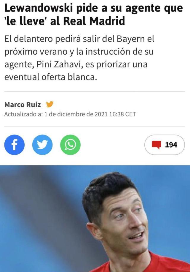 178直播讯 北京时间12月2日,来自西班牙知名媒体《阿斯报》的消息,效力于拜仁慕尼黑的神锋莱万多夫斯基,已经对自己的经纪人皮尼-扎哈维提出要求,让他明年夏天优先考虑皇马提出的报价,莱万与拜仁目前的合同是在2023年夏天到期,这意味着他将提前1年离队。莱万认为,登陆西甲加盟皇马,有助于未来自己角逐金球奖。