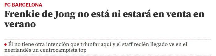 《世体》表示,哈维上任后,将德容视为中场的关键球员,他们没有出售荷兰人的打算。
