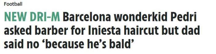 佩德里说:“小时候我和我爸一起去剪头,理发店的电视正在播巴萨的比赛,小白伊涅斯塔正是我的偶像。”