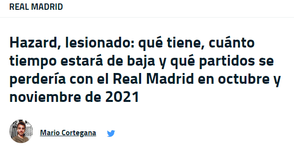 虽然皇马和比利时还没有正式公布阿扎尔的伤情,但进球网称他将无缘欧国联三四名决赛,也无法参加10月19日客场对顿涅茨克矿工的欧冠比赛。