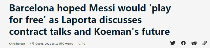 178直播讯 10月8日消息,巴塞罗那主席拉波尔塔表示,他们曾希望梅西免费为巴萨踢球。