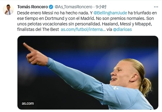 178直播12月15日,知名皇马“喉舌”、《阿斯报》副主编龙赛罗,在个人社交账号上发文怒喷本年度世界足球先生的三甲人选。不出意外,龙赛罗将矛头直指阿根廷球王梅西,他直言梅西1月份之后的近1年时间啥都没做,根本不配入围前三名。