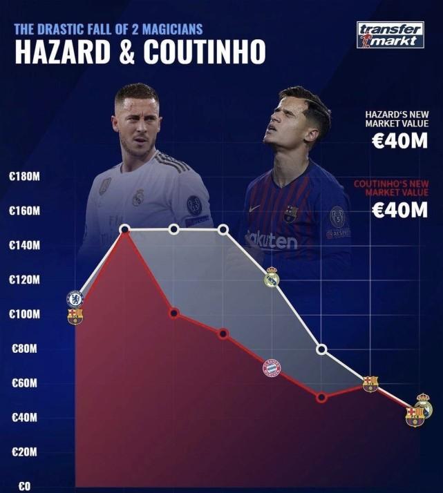 令人唏嘘的是,2018年10月,当时身处巅峰的两人身价都曾达到惊人的1.5亿欧元,但仅仅2年半的时间,两人如今的身价已经缩水超过3倍,不及巅峰时的零头。