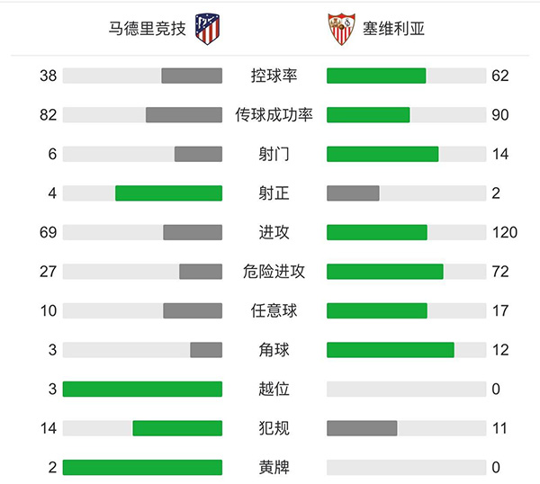 查看:马德里竞技vs塞维利亚 全场录像技术统计: