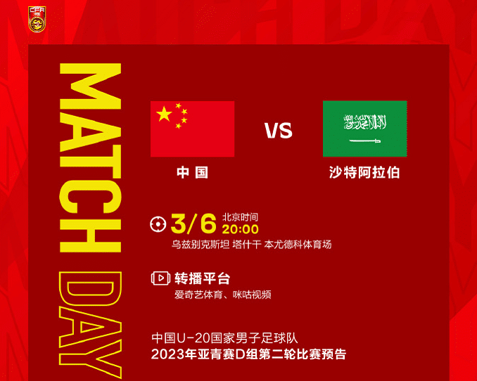 178直播讯03月06日,U20亚洲杯小组赛继续进行,中国队所在的D组将迎来第二轮的对决,日本队VS吉尔吉斯斯坦,中国队大战沙特,目前日本和沙特在首轮获得胜利,分别排名第一和第二,中国队首战1-2被日本逆转,目前排名第三,吉尔吉斯斯坦队目前垫底。