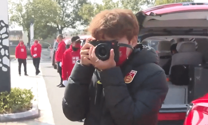 水庆霞主帅也特意感谢了保障团队的服务工作,她上了车之后依旧不忘朝着人群表达谢意:“感谢,感谢”