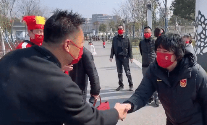 中国女足结束隔离,也受到了外界极大的关注,全队获赠国内首面宋锦国旗,中国女足主帅水庆霞和国家队管理人员也表达了感谢。值得一提是,这面五星红旗极其精致,是由苏州大师级工匠精心缝制而成,也是对于中国女足在前段时间的亚洲杯中勇夺冠军的褒奖。水庆霞举国旗,与管理人员和球迷代表合影,非常有意义。