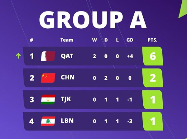 一旦国足不敌卡塔尔的话,塔吉克斯坦与黎巴嫩分出胜负,国足将排名小组第三。但如果另一场比赛打平的话,那么三队都是2分,需要依次比拼三队之间的对赛得分、对赛净胜差、对赛进球数、总净胜球、总进球数,最后一项是纪律分,也就是红黄牌。
