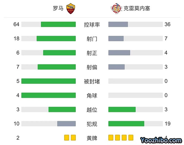 全场比赛结束,最终罗马1-2克雷莫纳无缘四强!