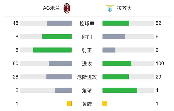 最终全场比赛结束,米兰4-0拉齐奥。