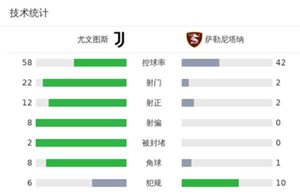 第12分钟,基耶萨左路传中到后点,坎比亚索头球摆渡,米雷蒂跟进铲射入网,尤文1-1萨勒尼塔纳!