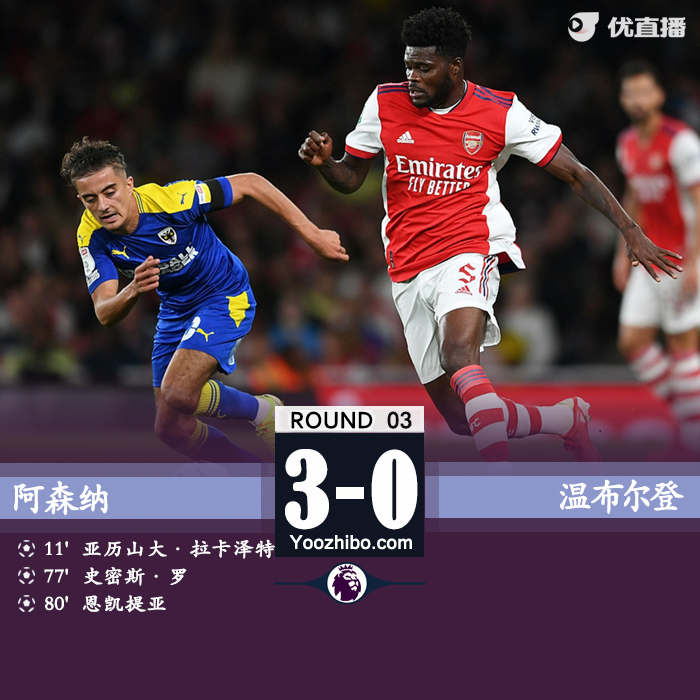 178直播9月23日讯 北京时间9月23日2点45分,英联杯第3轮阿森纳对阵温布尔登。上半场,马丁内利造点,拉卡泽特点射破门。下半场,史密斯罗替补登场破门,恩凯提亚也打入一球,全场比赛结束,阿森纳3-0温布尔登。