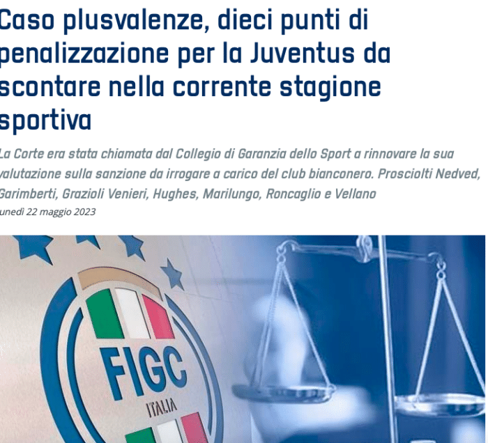 此前,尤文在一审判决中被判扣掉15分,包括时任主席安德烈-阿涅利在内的11名高层成员,被处以不同程度的禁足。今年4月,尤文通过意大利奥委会提出上诉,暂时拿回了15分,并得到了将案件重审的机会。但在22日重启的听证会上,检方提出的诉求是扣掉尤文11分,而最终法院的判决结果是扣掉10分,并且立即执行。