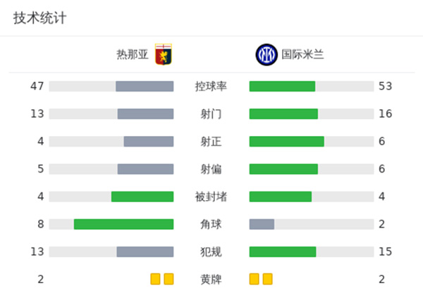 178直播讯:北京时间12月30日凌晨03:45,意甲联赛第18轮,国际米兰做客路易吉-费拉里斯球场,挑战热那亚,本场比赛主裁判为多维里。上半场,阿瑙托维奇补射打破僵局,德拉古辛头球扳平比分。下半场,阿瑙托维奇爆射制造威胁,阿切尔比头球造险。最终,热那亚1-1国际米兰。
