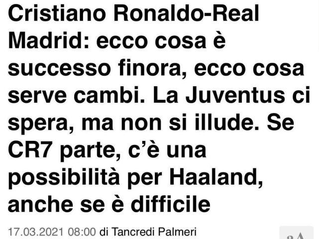 178直播3月18日讯 在尤文从欧冠耻辱性的出局之后,关于葡萄牙巨星C罗离队的传闻就从来没有间断过。而北京时间3月17日,来自拜因体育知名记者帕尔梅里(Tancredi Palmeri)透露,尤文图斯已经开始考虑和C罗在今夏分手,然后追求哈兰德,完成攻击线的换血。
