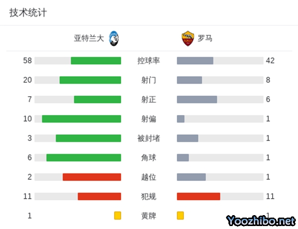 关键事件: 第18分钟,德凯特拉雷左路得球,面对曼奇尼一个简单的内切就将其甩开!右脚推射远角破门,亚特兰大1-0领先罗马↓