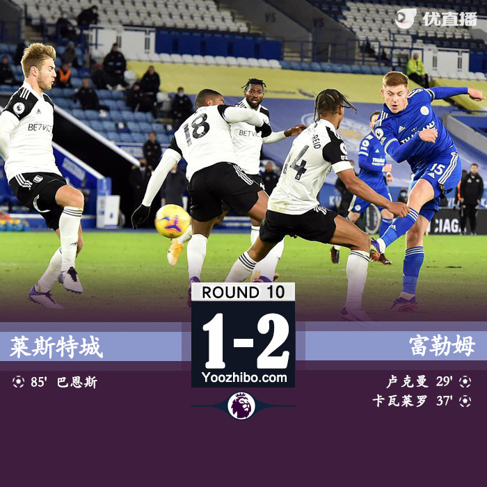 178直播讯:北京时间12月1日1:30,英超第10轮,莱斯特城迎战富勒姆。上半时安古伊萨助卢克曼为富勒姆首开纪录,博比-里德造点,卡瓦莱罗罚进扩大优势。下半时瓦尔迪助伯恩斯追回1球。全场战罢,最终,莱斯特城1-2富勒姆。本场战罢,莱斯特城18分,富勒姆7分。