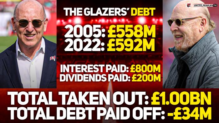 178直播05月23日曼联老板格雷泽家族收购俱乐部18年以来,从未向球队投入自己的一分钱,相反,他们将「杠杆收购」的5亿英镑债务转移到红魔账上。之后,格雷泽以利息、分红等模式,从曼联拿走了超过10亿英镑。举个例子,格雷泽六兄弟姐妹每年坐享2200万英镑左右负的分红,无论俱乐部盈亏都雷打不动。因此,红魔拥趸将这个家族称为「吸血鬼」。