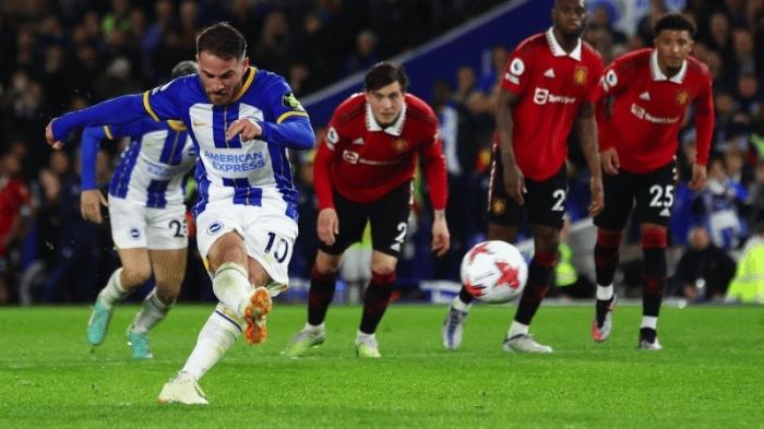 这一幕发生在比赛第98分钟,当时客串中卫的卢克肖禁区争顶时高举的手臂不慎手球。主裁在回看了VAR后,果断指向点球点。而站在点球点前的正是麦卡利斯特。尽管面临巨大的压力,这位阿根廷国脚还是冷静爆射球门左上角,德赫亚完全猜错方向。就这样,凭借麦卡利斯特的绝杀,布莱顿成功在主场拿到3分。