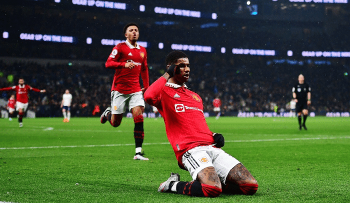 比赛第7分钟,拉什福德在前场完成了精彩的突破过人,随后斜传空位的桑乔,后者杀入禁区内切突然冷射兜远角得手,曼联1-0热刺;比赛第44分钟,B费在快攻过程中一脚长传,精准找到了前插的拉什福德,后者单挑后卫杀入禁区小角度爆射破门,曼联2-0领先。