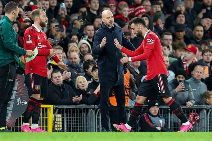 滕哈格透露,裁判告诉他,由于布鲁诺·费尔南德斯和安东尼在场上无法控制自己的情绪,他们有被罚下的风险。曼联教练组分析过后,认为裁判所言非虚。
