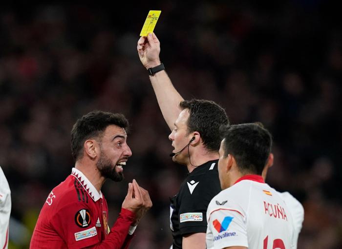 178直播04月14日讯 曼联下周回访塞维利亚的皮斯胡安球场时,葡萄牙中场布鲁诺·费尔南德斯将铁定缺席,因为在老特拉福德拿到第三张黄牌,根据规则他需停赛一场,无缘次回合。