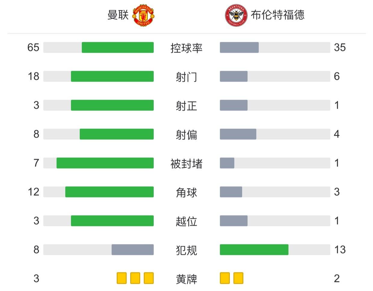 曼联1-0布伦特福德 拉什福德制胜萨比策助攻