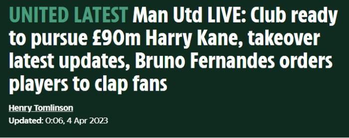 178直播04月04日讯 英国《太阳报》称,曼联愿意将求购哈里·凯恩的初始报价提升到9000万英镑,向热刺收购这位29岁的英格兰队长。此前,英媒称曼联只想给出8000万英镑报价而已。