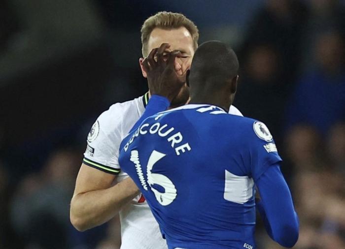 当时比赛进行到第58分钟,双方在边线附近展开激烈拼抢。杜库雷与凯恩互相推搡,凯恩用手撕扯杜库雷的球衣,此举惹恼了后者。怒不可遏的杜库雷用手抓了凯恩的面部,而随后凯恩直接捂脸像“中弹”一样夸张倒在地上。当值主裁第一时间将杜库雷红牌罚下,而凯恩也吃到了黄牌。