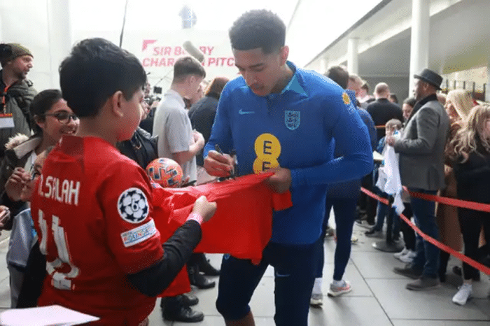 而19岁的贝林厄姆则被认为喜欢皇马和利物浦。本周在英格兰国家队训练期间,贝林厄姆为一名身穿萨拉赫11号球衣的小球迷在他的利物浦球衣上签名,再次引发了其心向安菲尔德而非老特拉福德的说法。