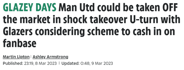 尽管格雷泽家族同意与卡塔尔银行家谢赫·贾西姆·本·哈马德·阿勒萨尼和英力士的前英国首富吉姆·拉特克里夫爵士会晤,谈判潜在的出售方案,但这并不代表他们一定卖掉曼联。到目前为止,几乎没有迹象表明任何报价接近格雷泽家族对俱乐部的60亿英镑的估值。