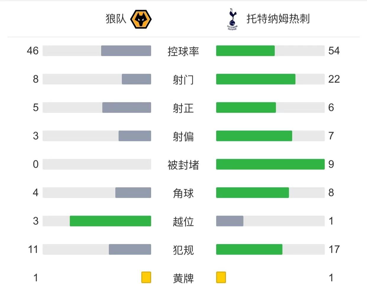 最终,热刺0-1狼队,结束英超2连胜,仍然排在第四位。